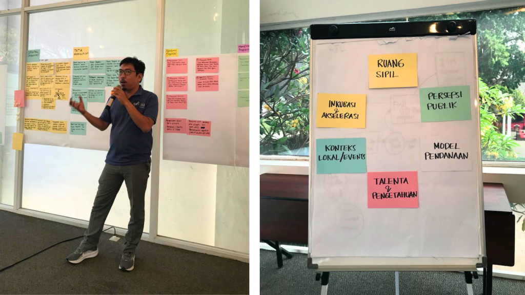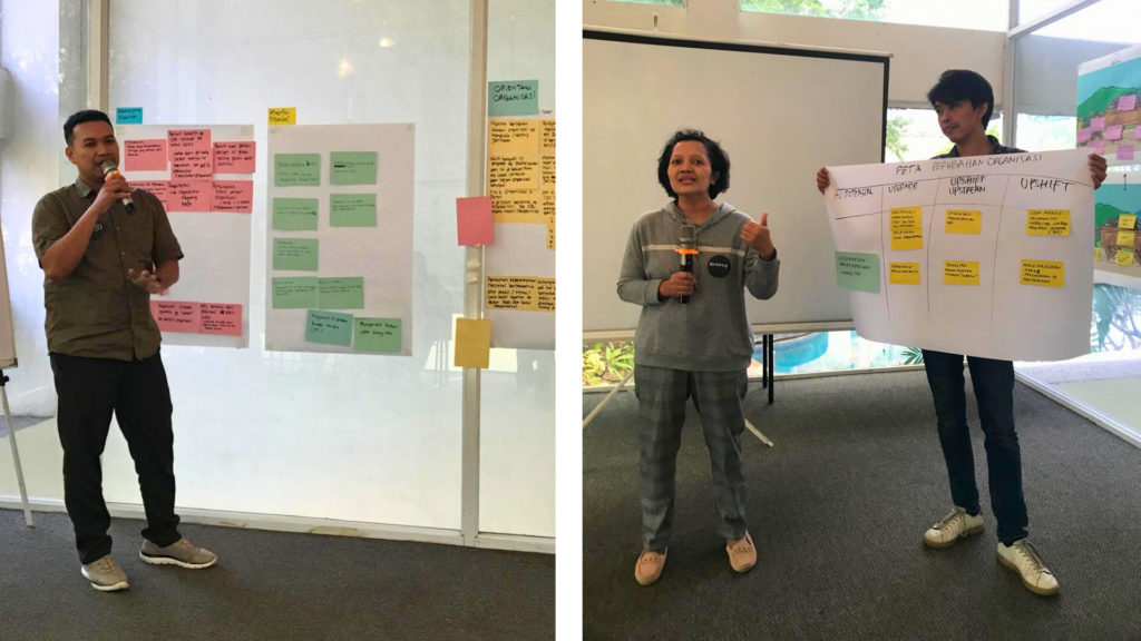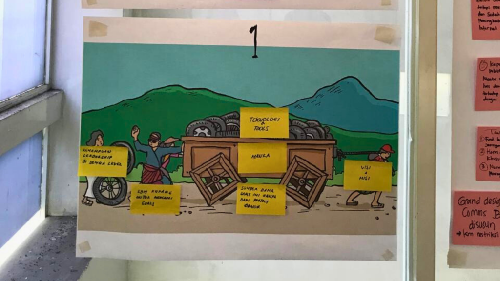 Secara menyeluruh tim mengidentifikasi apa yang menjadi “square wheels” atau tantangan utama yang menghambat laju organisasi. Mengidentifkasi main concern yang menjadi prioritas organisasi. Hingga menghasilkan strategi inovatif sebagai “round wheels” untuk mendorong laju dan keberlanjutan organisasi dan mengidentifikasi kebutuhan pengembangan kapasitas organisasi.