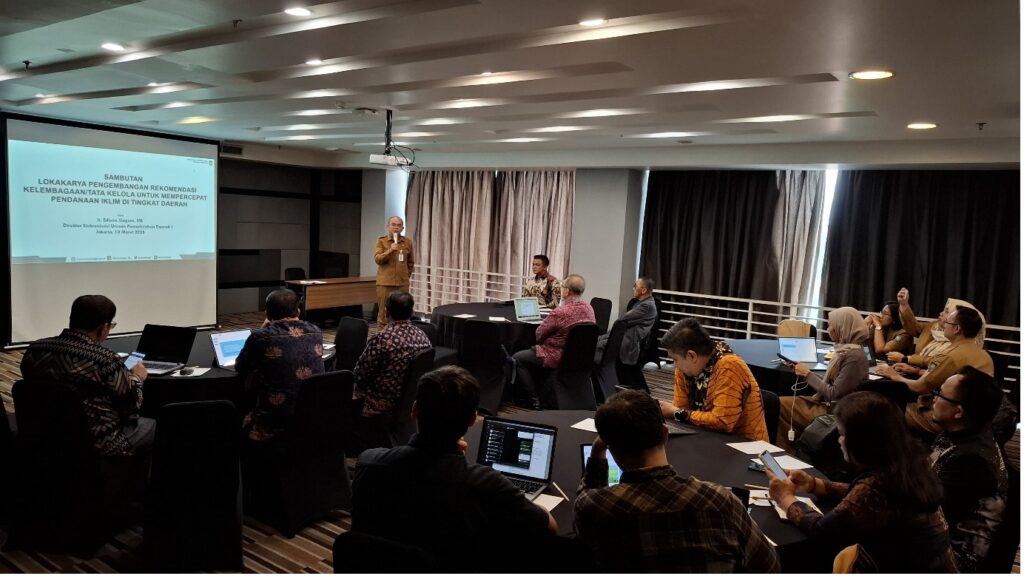 Direktur Sinkronisasi Urusan Pemerintahan Daerah I Kementerian Dalam Negeri, Bapak Ir. Edison Siagian, ME, mengawali acara dengan menyampaikan pentingnya sinkronisasi regulasi dan kebijakan untuk menciptakan efisiensi dalam pendanaan terkait perubahan iklim. Beliau menekankan bahwa dukungan berbagai pihak, termasuk keterlibatan daerah, sangat diperlukan agar pemerintah daerah dapat melaksanakan program mitigasi dan adaptasi perubahan iklim secara efektif.