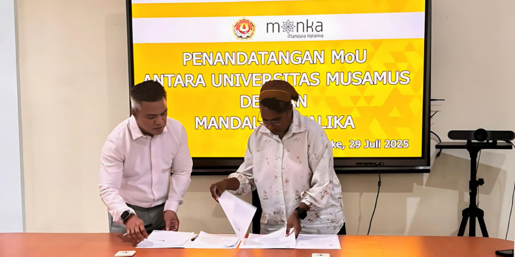 Manka, 06 Agustus 2025 – Perkumpulan Mandala Katalika (Manka) resmi menjalin kemitraan dengan Universitas Musamus (UNMUS) melalui penandatanganan Nota Kesepahaman (MoU) yang dilaksanakan pada Selasa, 29 Juli 2025, di Ruang Soter Nautje, Gedung Rektorat Universitas Musamus, Merauke.